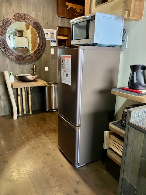 2口のIHコンロ、炊飯器、電気ケトルがいつでも使え、お鍋や簡単な調理器具も揃っています。冷凍冷蔵庫もございますので、数日分の食材を買い込んでもOKです。徒歩5分圏内にコンビニ・スーパーはもちろん、空堀商店街がありますので八百屋・魚屋・豆腐屋・スパイス屋など食材店も充実しています。